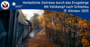 18. Oktober 2025 7:30 – 19:00Herbstliche Zeitreise durch das Erzgebirge – Mit Volldampf nach Schlettau – Ausgebucht!