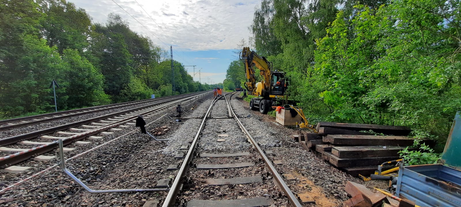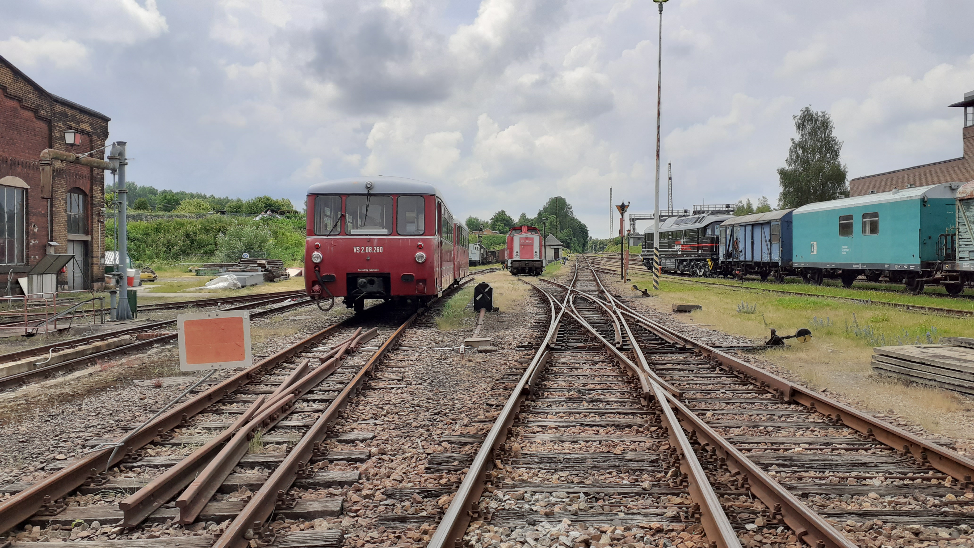 Ein Großteil unserer Gleisanlagen stammt noch aus Zeiten der Deutschen Reichsbahn und bedarf nun einer umfassenden Erneuerung. Dies soll soweit wie möglich in Eigenleistung gestemmt werden, auch wenn dabei nicht komplett auf professionelle Unterstützung verzichtet werden kann. Bereits im März des Jahres war es uns möglich, einen gebrauchten Zweiwegebagger des Typs Atlas für dieses Vorhaben zu erwerben, welcher nun bei den ersten Gleisbaustellen bereits fleißig arbeiten durfte.