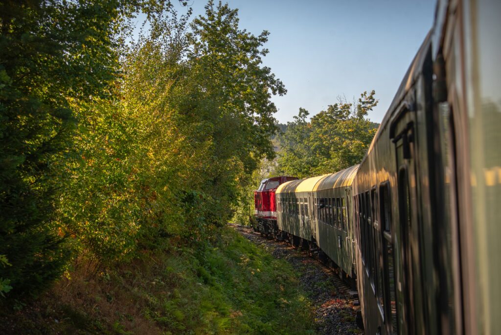 Mit unserem liebevoll gepflegten Museumszug aus den 1970er Jahren, gezogen von der Diesellok 112 646, starteten wir in Chemnitz. Die Fahrt führte uns über Riesa und Dresden direkt hinein in das Herz des Elbsandsteingebirges.