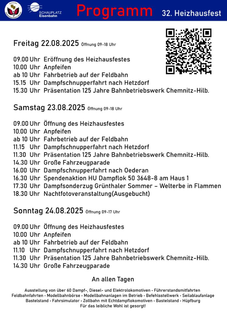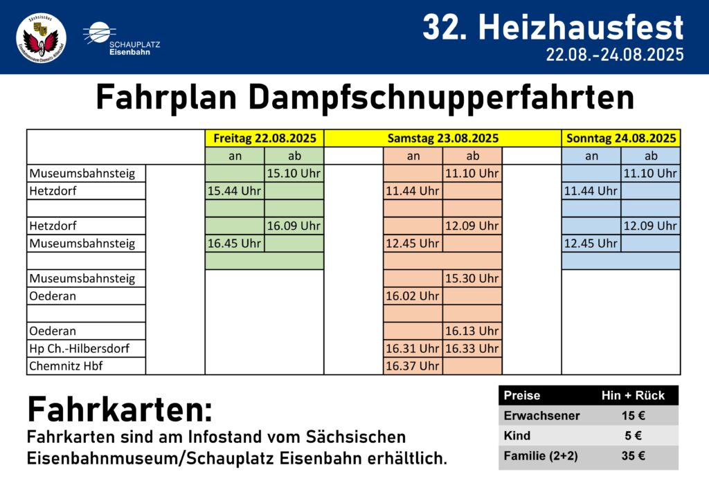 Das Chemnitzer Heizhausfest, eine traditionsreiche Veranstaltung, steht wieder vor der Tür und feiert dieses Jahr seine 32. Ausgabe! Vom 22. bis 24. August 2025 verwandelt sich der „Schauplatz Eisenbahn“ in ein Mekka für Eisenbahnenthusiasten und Geschichtsinteressierte. Der Festauftakt erfolgt am Freitag, den 22.08.2025, um 09:00 Uhr und lädt Besucher ein, das größte noch funktionstüchtige Dampflokbetriebswerk Europas zu erkunden.